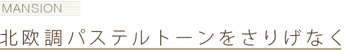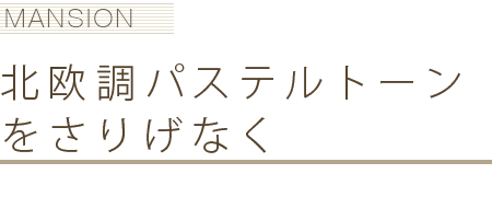 ドアや台所のタイルにはパステルトーンを使うことで女性に人気ある北欧調でソフトな雰囲気に。