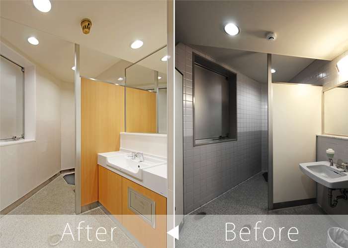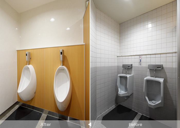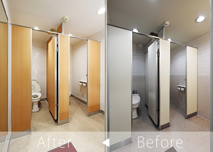 オフィスの契約前にテナントが重視するチェックポイントはトイレ。そんなトイレを共同で使用する賃貸物件においても、美しくリフォームするだけでなく、シャワートイレはもちろんのことセンサー式手洗い器や小便器自動洗浄システム等の近代設備を導入することでイメージアップが期待できます。
